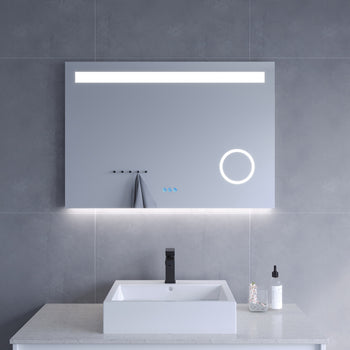- LED Badspiegel Badezimmerspiegel mit Beleuchtung Bluetooth Lautsprecher Schminkspiegel 100x70 DALES Typ E | Touch Sensor Dimmbar Antibeschlag Kaltweiß 6400K