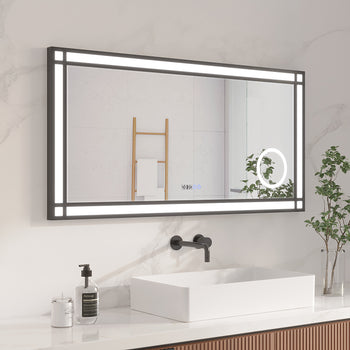 - LED Badspiegel mit Beleuchtung 120x60 cm Schwarz Fensteroptik Aluminium Rahmen Schminkspiegel Touch Dimmbare Kaltweiß Beschlagfrei