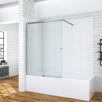 Ausverkauft - 110 x 150 cm Badewannenaufsatz Schiebetür Duschabtrennung Glas Badewanne Duschwand Glaswand Trennwand Glas aus Sicherheitsglas mit Lotuseffekt Beschichtung(1)