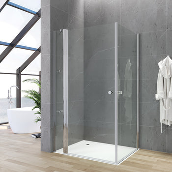 - Duschkabine Eckeinstieg Falttüren an Festteilen Eckdusche mit Duschtür Doppeltür Pendeltür rahmenlose Eckduschwand Höhe 197 cm