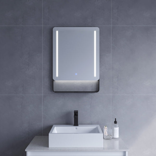SCHORTENS-Serie Badspiegel mit LED Beleuchtung Schwarzer Rahmen 50 x 70 cm Typ B