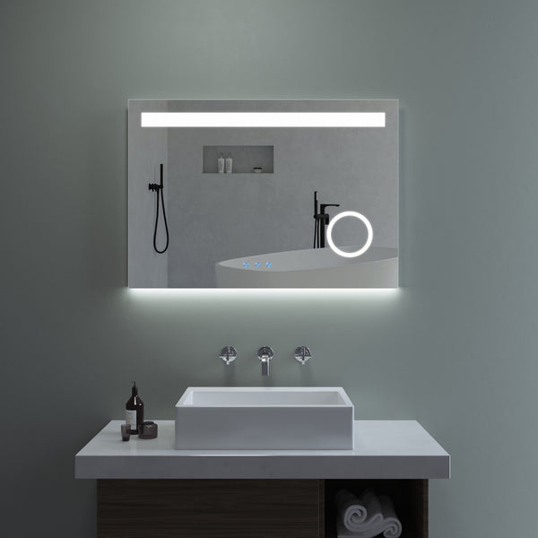 ④【Mit integriertem Kosmetikspiegel】Unser LED Badspiegel ist mit einem Kosmetikspiegel von 3-Fach Vergrößerung ausgestattet. Der Vergrößerungsspiegel ist zusätzlich mit LED Leuchtstreifen versehen.