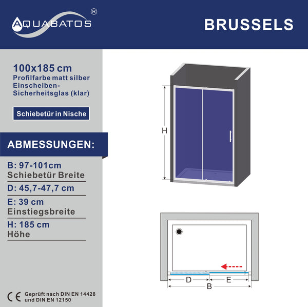 【Größe】Schiebetür Duschtür in Nische Breite 100/110/120/130/140/150/160 cm, wandausgleich von 20 mm auf jeder Seite. Höhe: 185 cm.