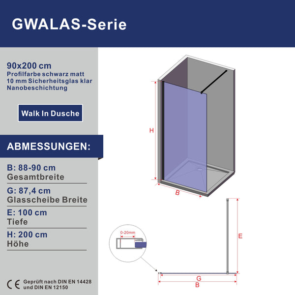 - ✔【Bequemer Einstieg im Badbereich】Das Walk-In Duschwand Glas kann ebenerdig eingebaut werden, um ein besonders bequemes und barrierefreies Nutzungserlebnis zu erreichen. Beim Ein- und Ausstieg brauchen Sie sich keine Sorgen um Stolperfallen zu machen. Alternativ ist Einbau in Kombination mit einer Duschwanne auch möglich.