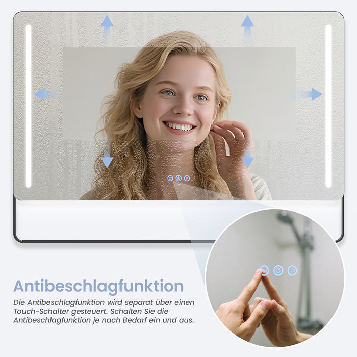 • 【Separate Anti-Beschlag-Funktion】Die flache Heizfolie wird direkt auf die Rückseite des Spiegels aufgebracht und wird separat über einen Touch-Schalter gesteuert. Schalten Sie die Anti-Beschlag-Funktion je nach Bedarf ein und aus, sicher, umweltfreundlich und energiesparend.