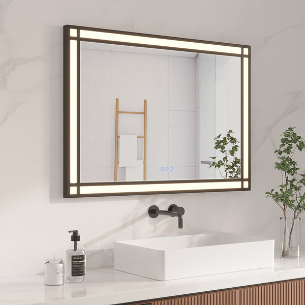 ③【Separate Anti-Beschlag Funktion (Spiegelheizung)】Die flache Heizfolie wird direkt auf die Rückseite des Spiegels aufgebracht und wird separat über einen Touch-Sensor gesteuert. Schalten Sie die Anti-Beschlag-Funktion je nach Bedarf ein und aus, sicher, umweltfreundlich und energiesparend. Hinweis: Die Anti-Beschlag Funktion ist nur im mittleren Teil des Spiegels wirksam und kann nicht den gesamten Bereich des Spiegels abdecken, d.h nur der mittlere Teil des Spiegels ist beschlagfrei.
