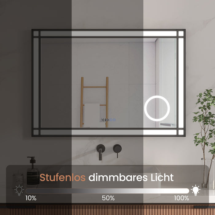 • 【SMART-FUNKTIONEN】Der Spiegel verfügt über eine digitale Zeitanzeige und einen praktischen 3-fach vergrößernden Kosmetikspiegel für präzises Schminken und Rasieren.