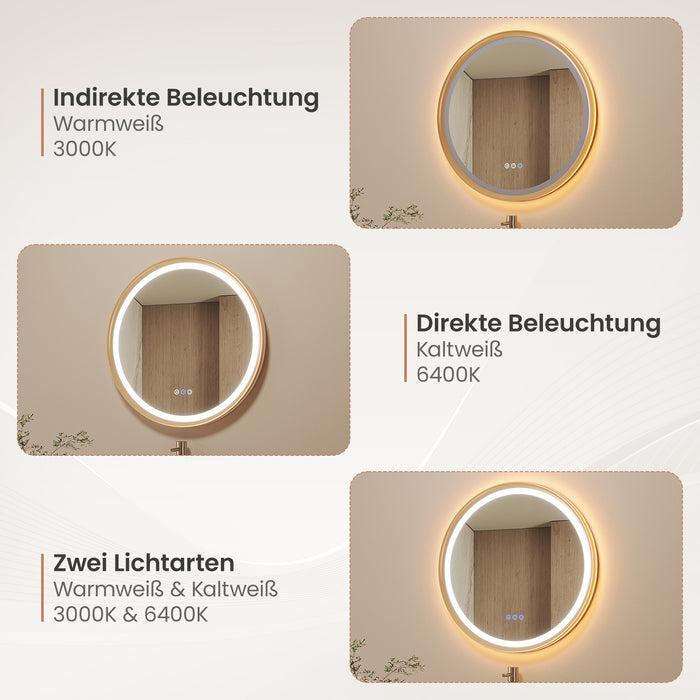 GARDES-Serie Badspiegel mit Beleuchtung Rund 60 cm Typ C