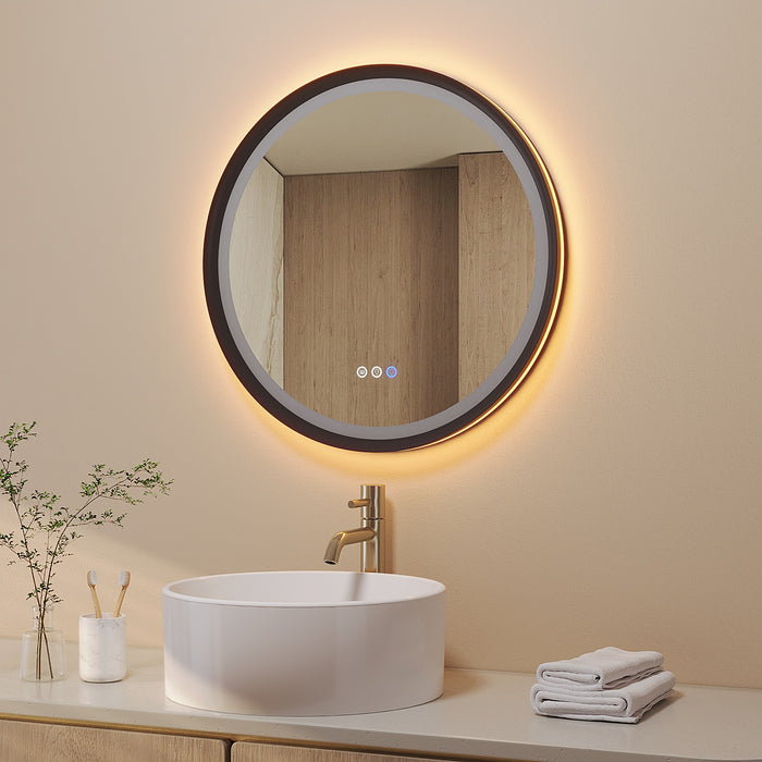 • EINZIGARTIGES BELEUCHTUNGS-DESIGNDie Vorderseite dieses runden Spiegels ist mit kaltweißen LED-Lichtstreifen ausgestattet, die für eine helle Ausleuchtung sorgen. Die Seiten des Rahmens hingegen mit warmweißen LED-Lichtstreifen versehen, um eine gemütliche Atmosphäre zu schaffen.