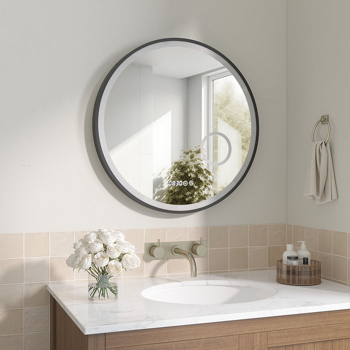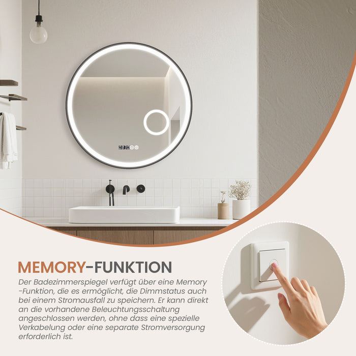 Wandspiegel Rund in schwarz Badspiegel mit Beleuchtung Aluminiumrahmen SAUTENS-Serie 60 cm Typ D